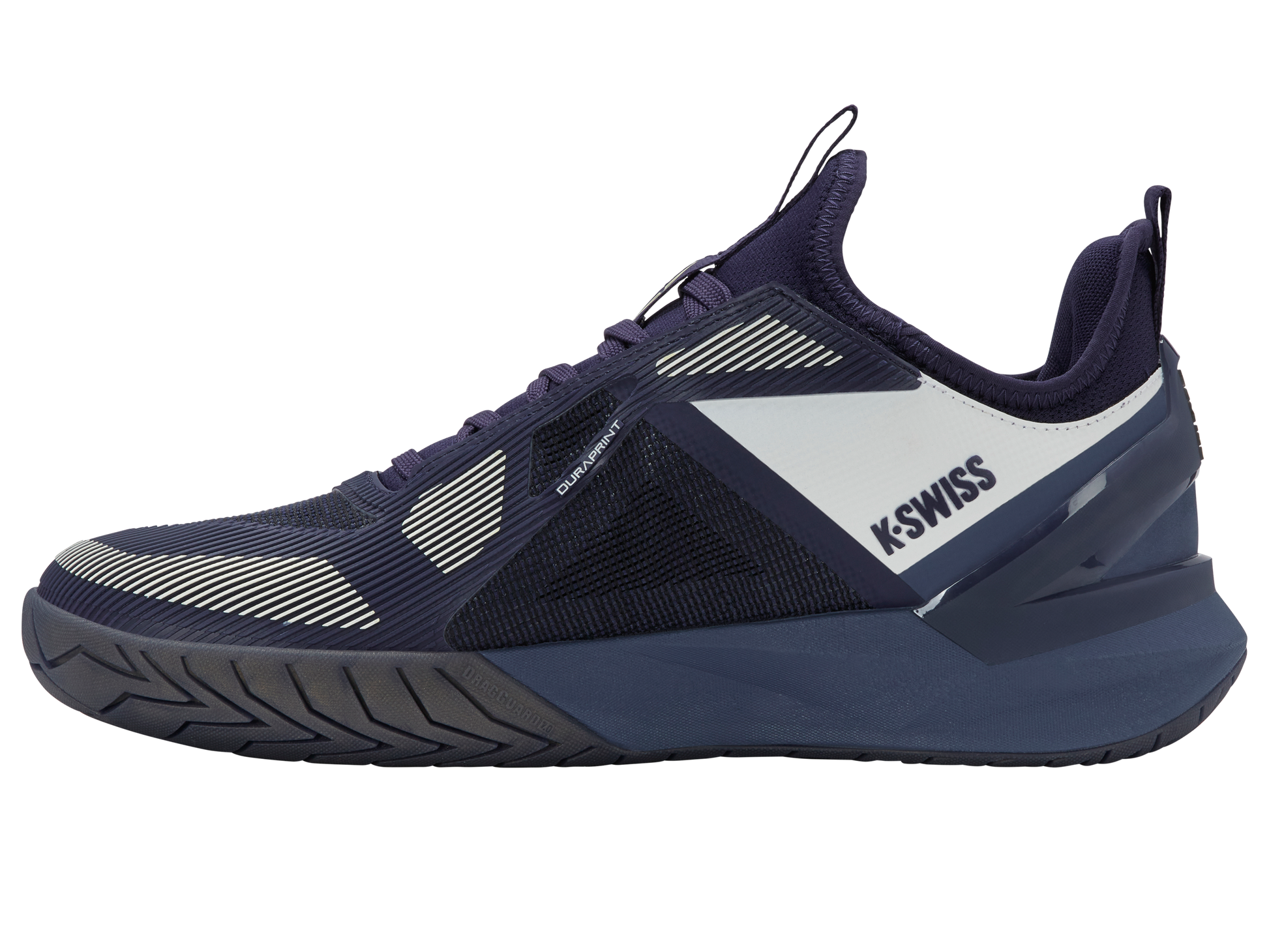 The K-Frame Speed Rublo, co-designed with Andrey Rublev, features a TPU K-Frame for forefoot stability, Hyper Foam midsole for energy return, and a lightweight Duraprint upper for breathability and durability.