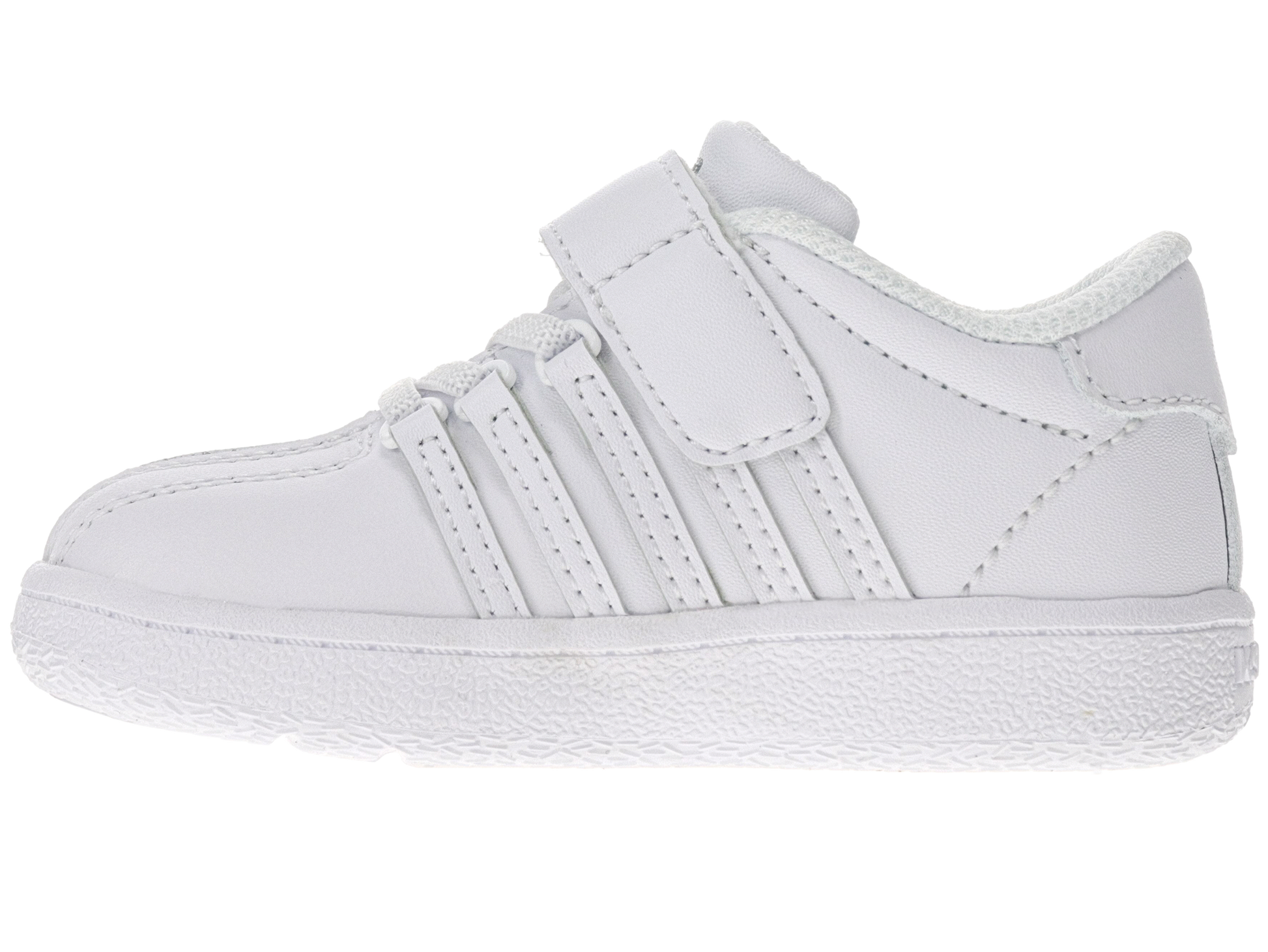 Start them young in our signature shoe; the ultimate classic. The Classic VN has been reimagined for kids of all ages with a sturdy leather upper, our classic 5 stripes and a 3-piece toe. Perfect for the playground, this classic style features metal D-rings which keep the laces in place and ensure all-day support, while a soft EVA midsole provides a comfortable fit for all-day wear. As the indisputable hero of our Classics family, the Classic VN boasts heritage, but continues to be a reliable choice for any kid. Elastic lace and velcro strap closure closure for easy foot entry.