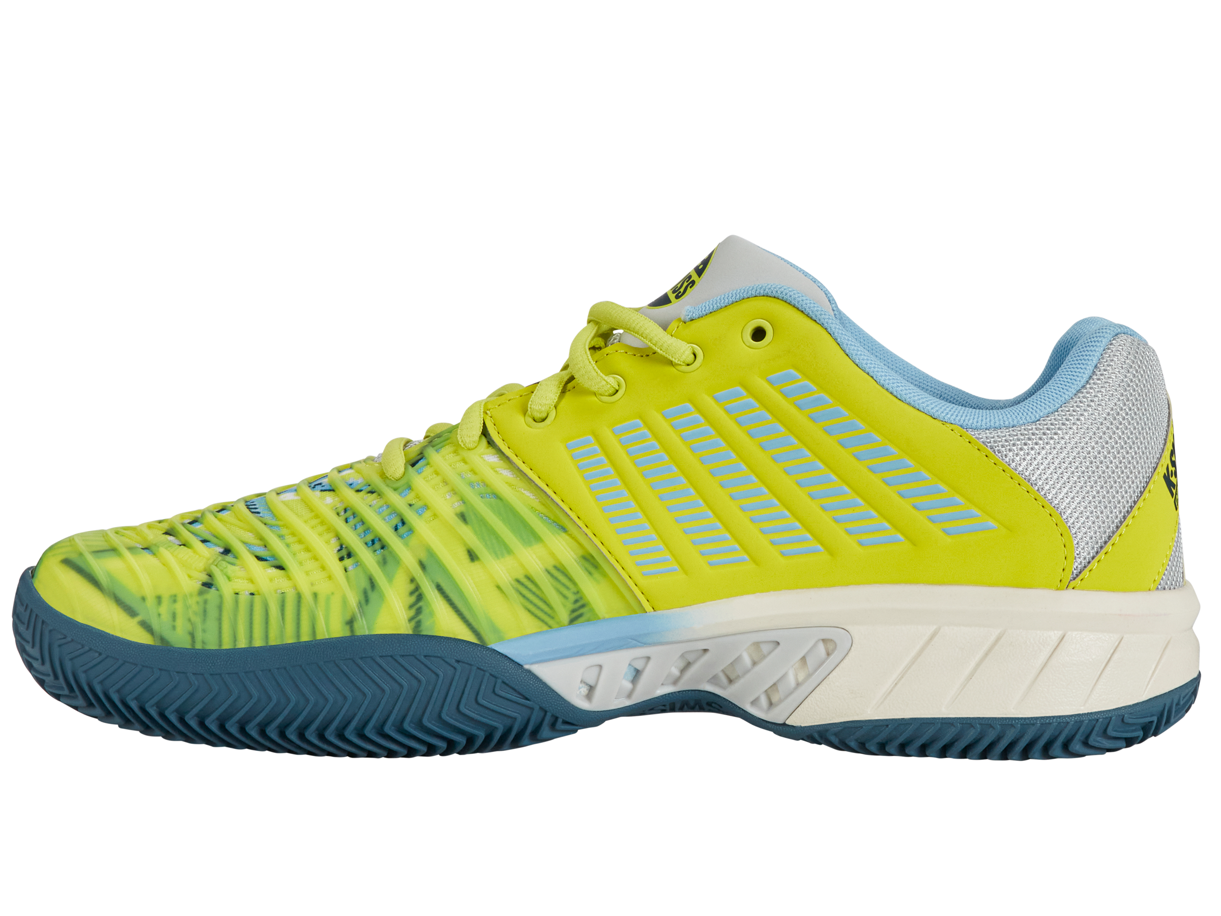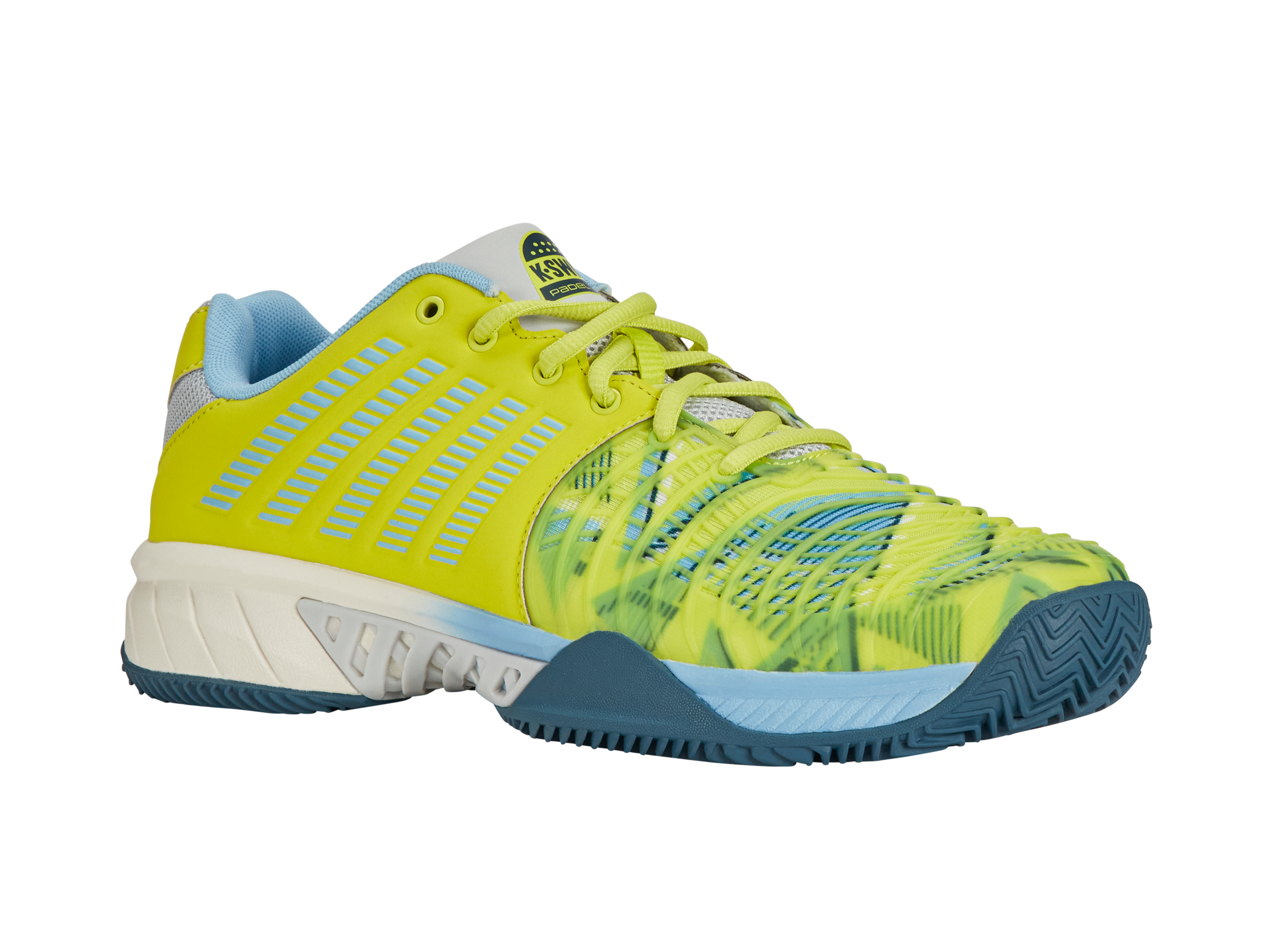 Play your best in the Express Light 3 Padel— a lightweight shoe built for comfort and performance. DuraWrap Flex on the upper offers flexible support and drag protection. Inside, a padded ankle collar and foam sock liner provide cushioning and stability. The HB outsole’s deep herringbone pattern delivers top traction on any court.