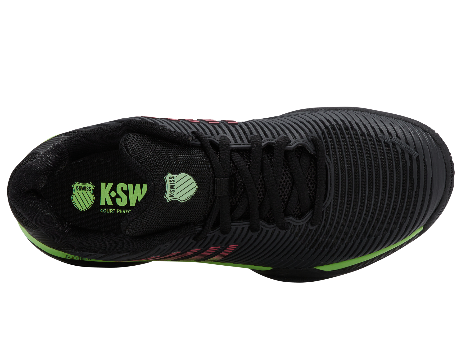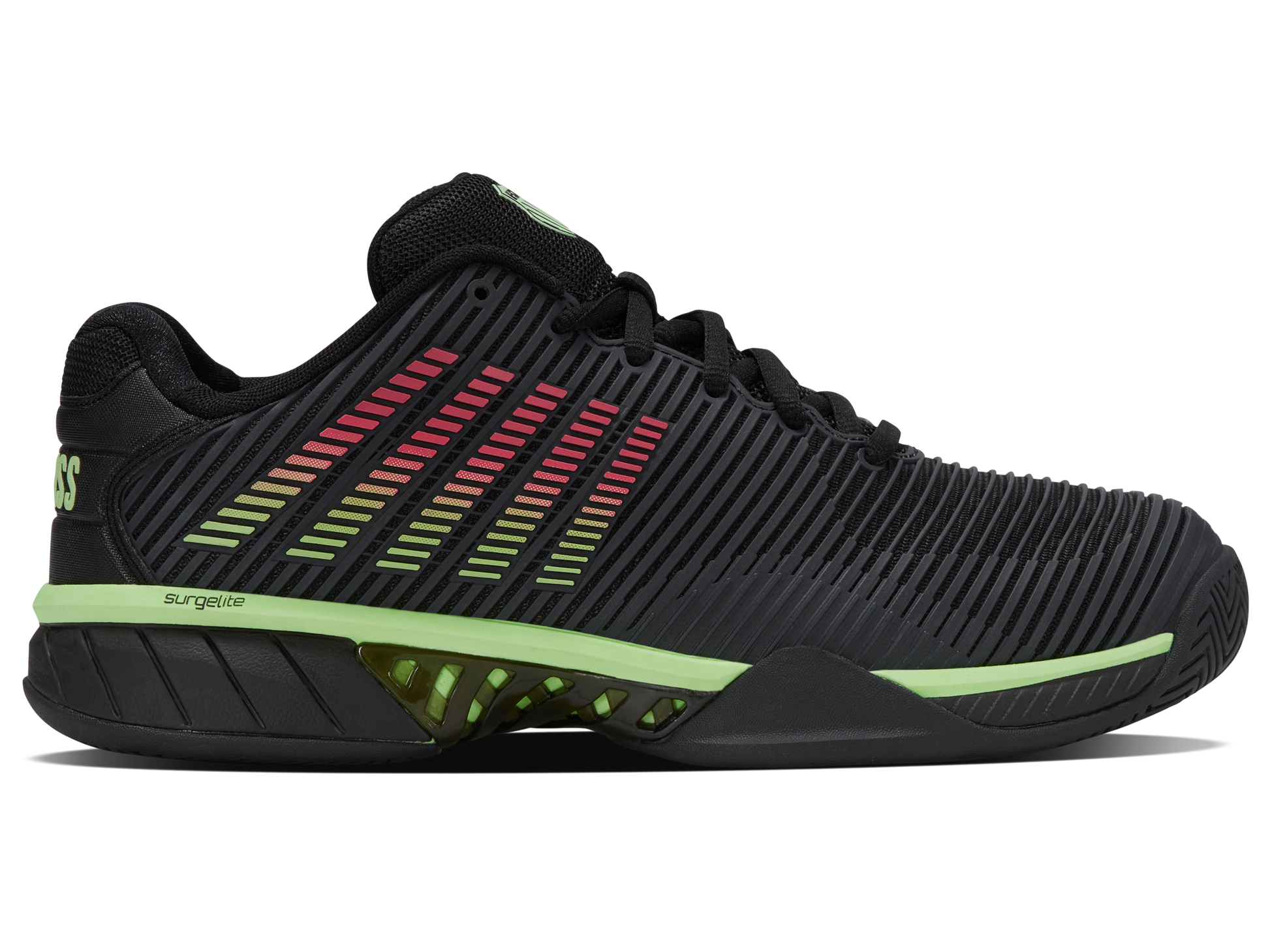 K-Swiss best-selling shoe, the Hypercourt Express 2, is light, comfortable, breathable, and has a generous fit, making it the ideal choice for a variety of playing styles and levels. Durawrap Flex, gives the shoe support with no break-in period, while Surgelite midsole technology provides all day comfort.