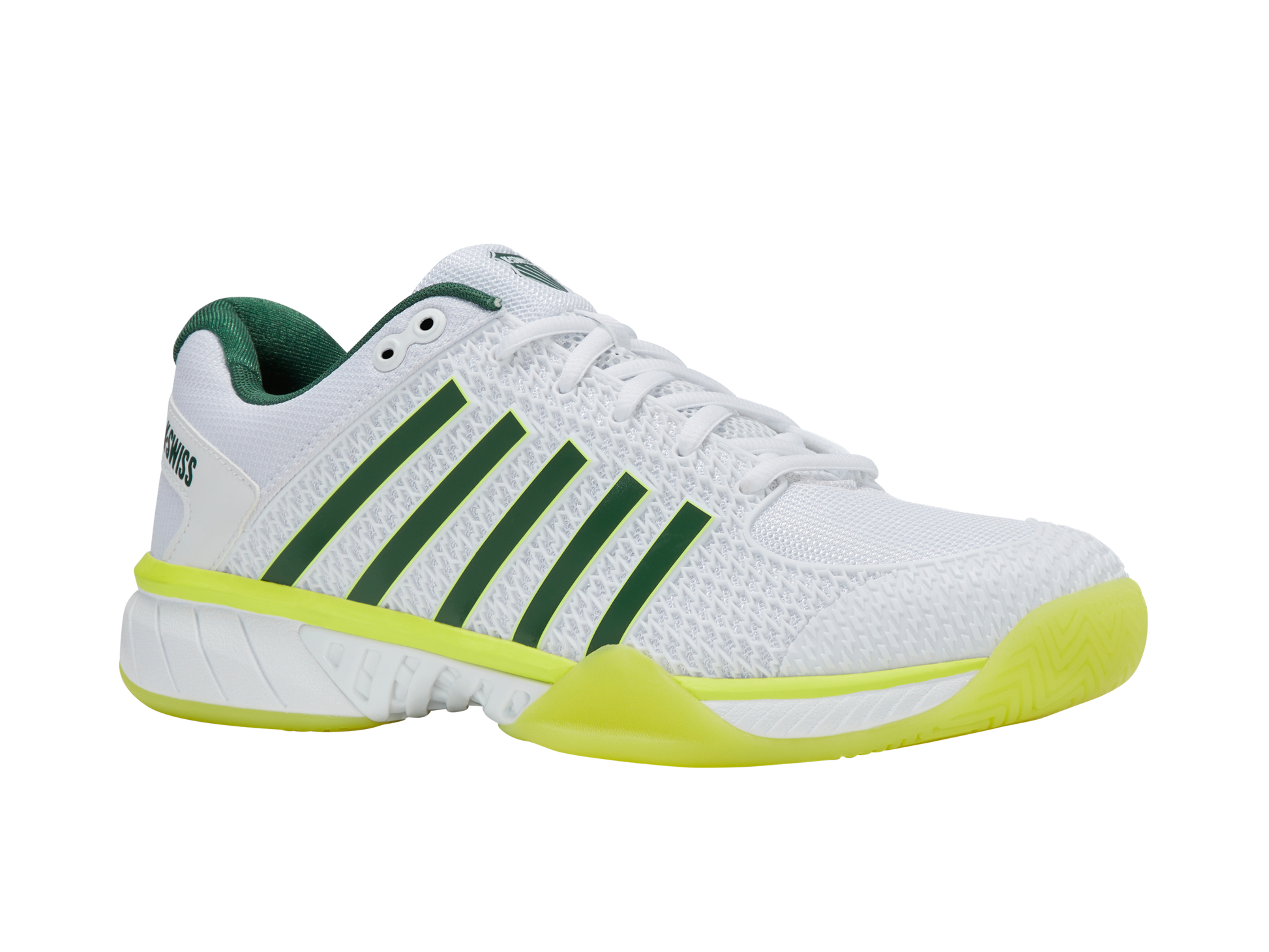The Express Light Pickleball is a lightweight, breathable shoe built for players of all levels, offering comfort and agility on the court. A K-EVA midsole and 180-degree Plantar Support Chassis deliver stability and responsiveness, while the Aosta rubber outsole with DragGuard ensures lasting durability. Complete with the K-Swiss Pickleball logo and custom sock liner, it blends style and performance to elevate your game.