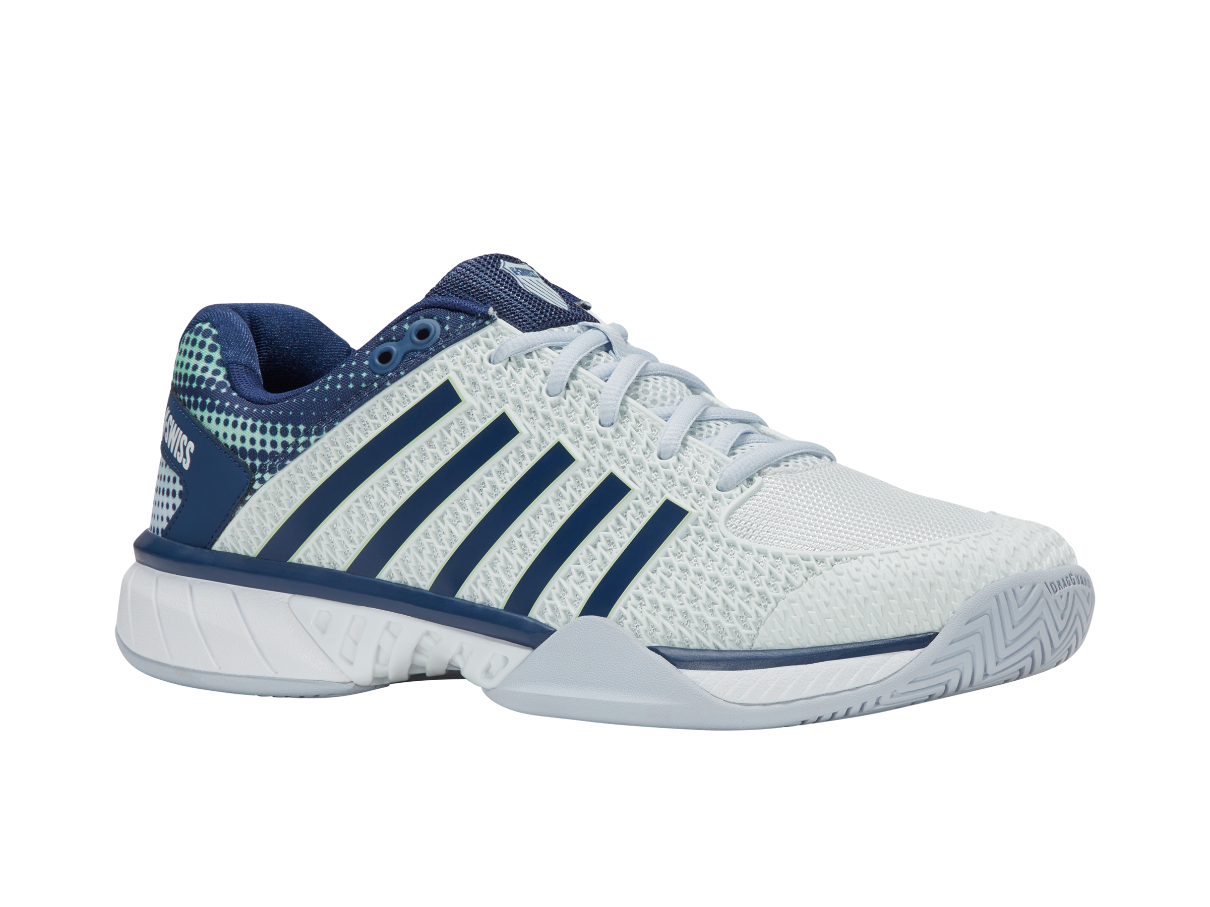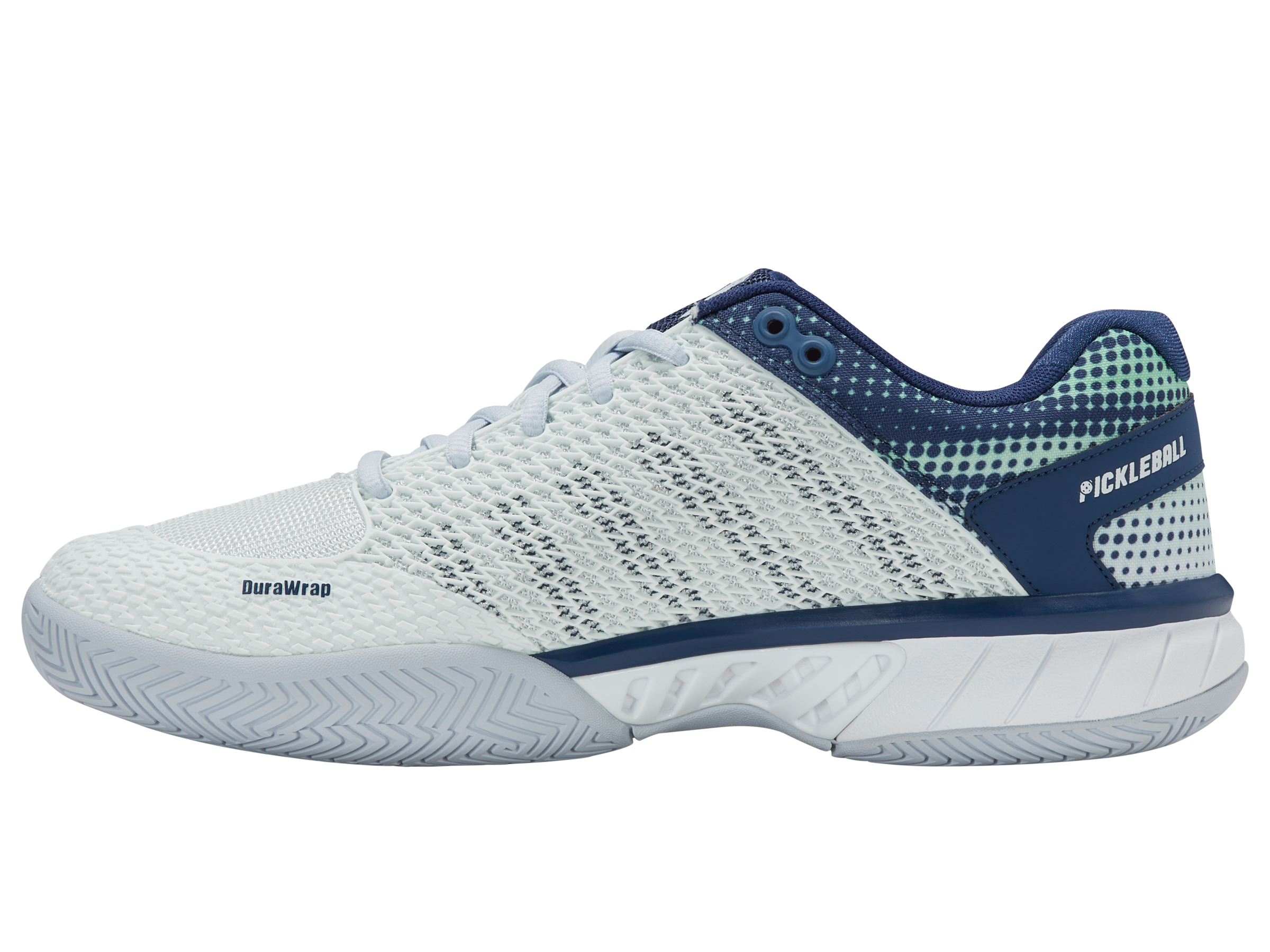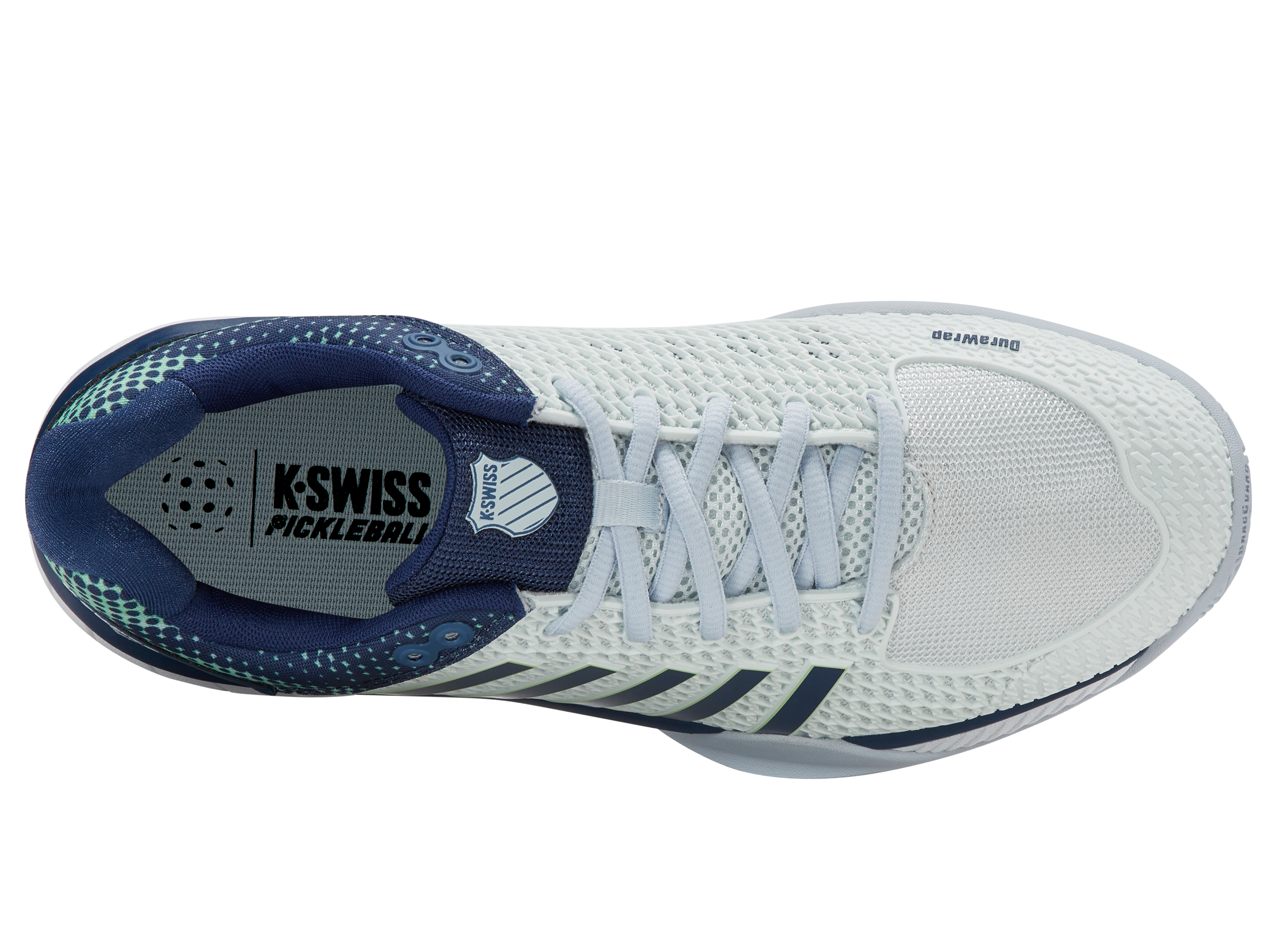 The Express Light Pickleball is a lightweight, breathable shoe built for players of all levels, offering comfort and agility on the court. A K-EVA midsole and 180-degree Plantar Support Chassis deliver stability and responsiveness, while the Aosta rubber outsole with DragGuard ensures lasting durability. Complete with the K-Swiss Pickleball logo and custom sock liner, it blends style and performance to elevate your game. Also available as a wide version with a more spacious toe box.