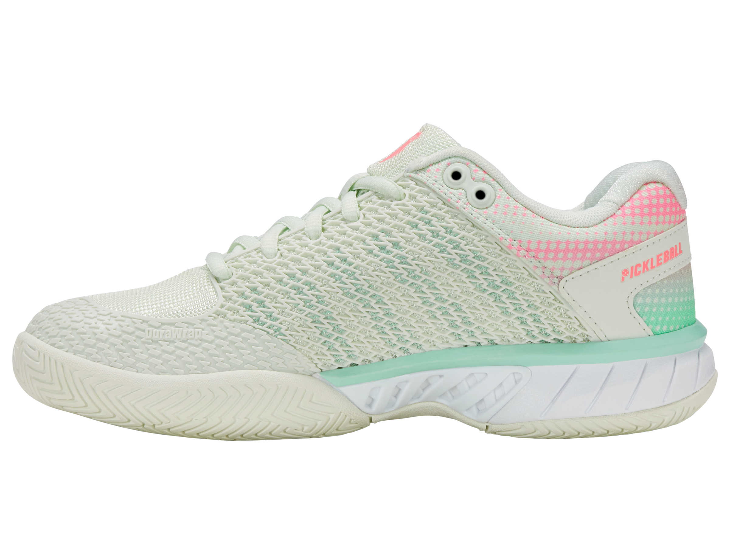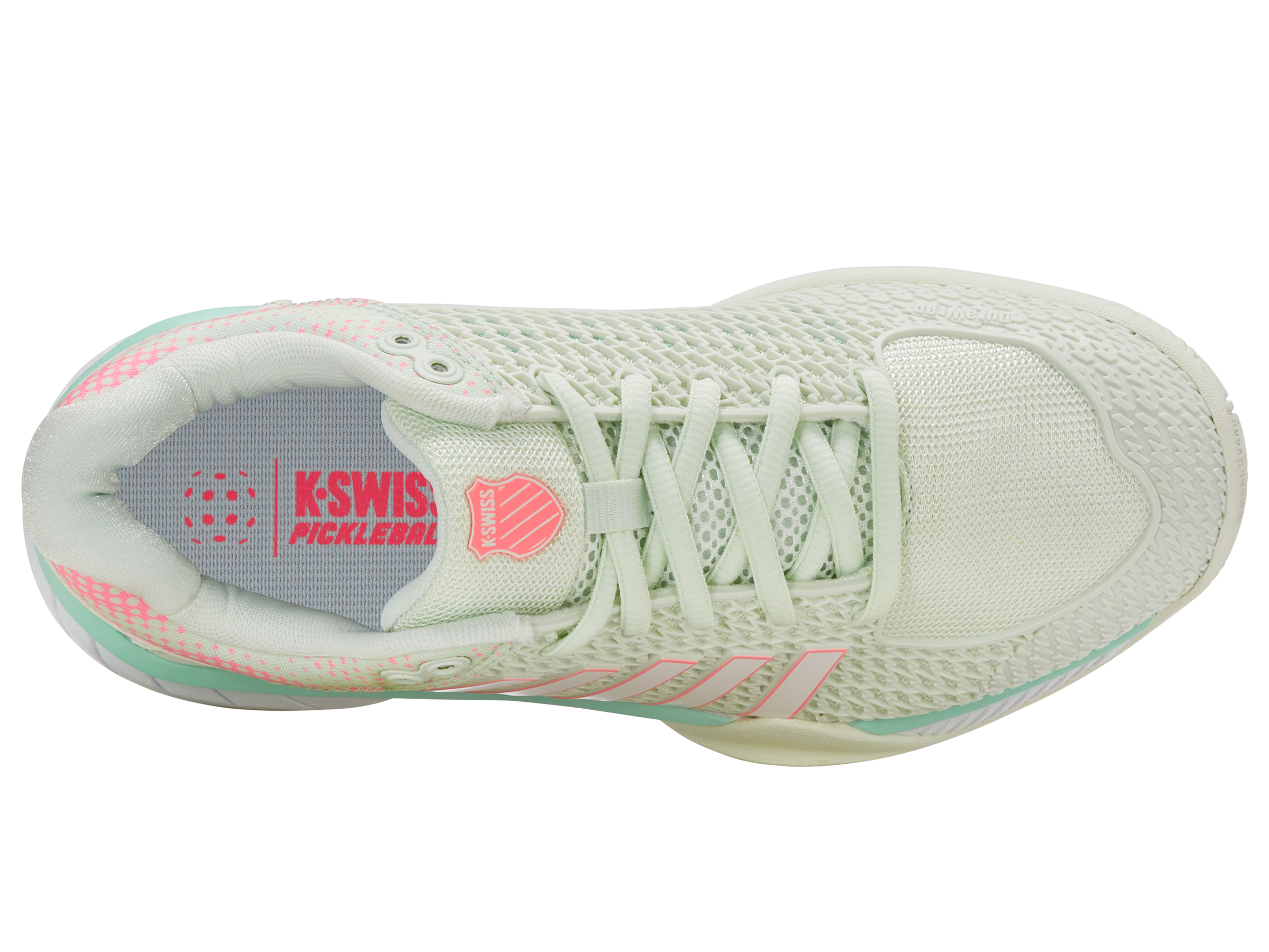 The Express Light Pickleball is a lightweight, breathable shoe built for players of all levels, offering comfort and agility on the court. A K-EVA midsole and 180-degree Plantar Support Chassis deliver stability and responsiveness, while the Aosta rubber outsole with DragGuard ensures lasting durability. Complete with the K-Swiss Pickleball logo and custom sock liner, it blends style and performance to elevate your game. Also available as a wide version with a more spacious toe box.