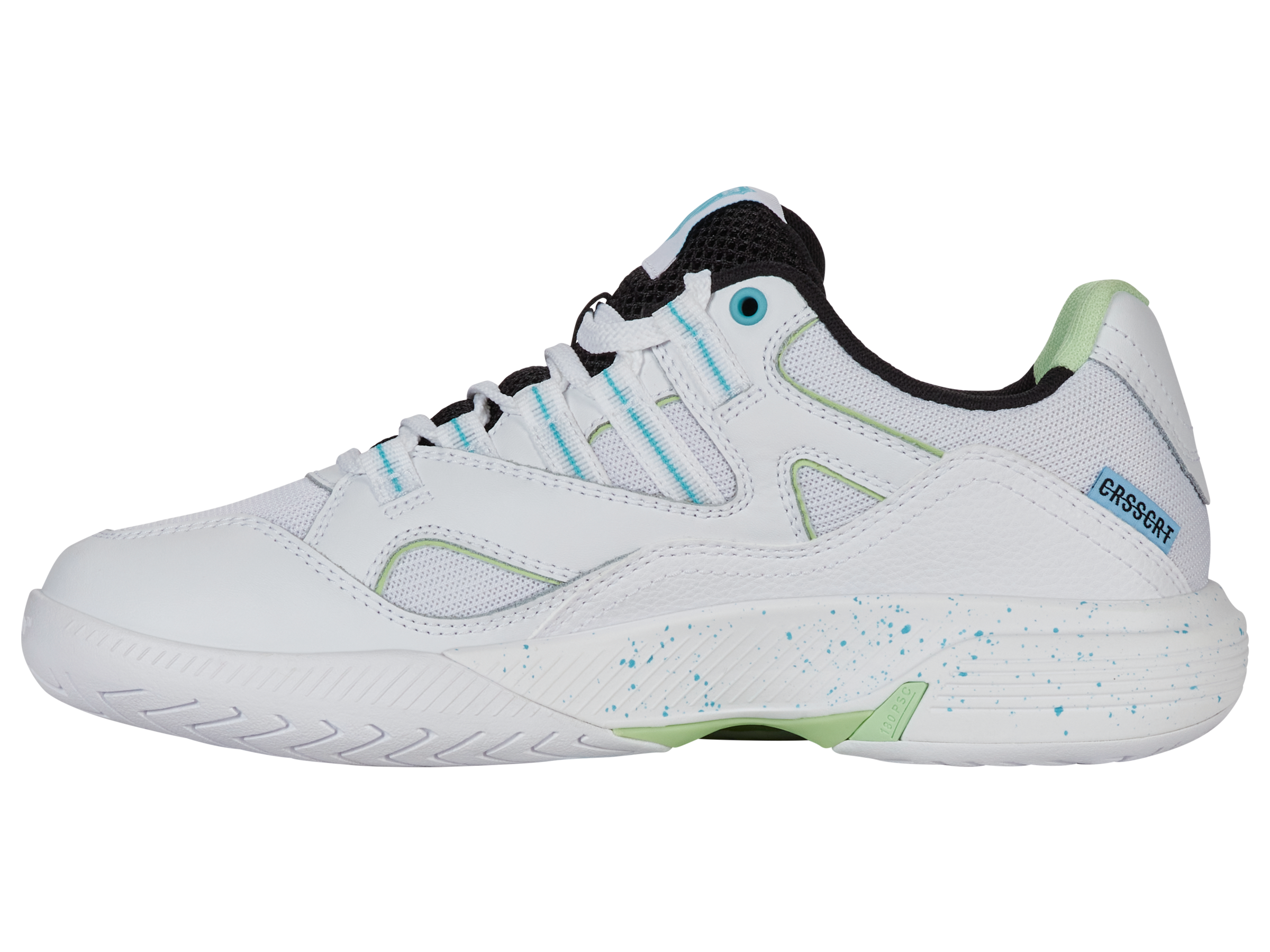 Introducing the K-Swiss Tura Team: a fusion of performance court shoe and street sneaker style. Its elevated midsole offers ample cushioning for both court play and casual wear. The durable outsole ensures support for on-court activities, while the lightweight, breathable upper enhances stability for agile movement. With DuraWrap protection in the toebox, it's built for durability and stability on a Pickleball court . Experience the blend of street sneaker aesthetics with high-performance technology in the TuraTeam.