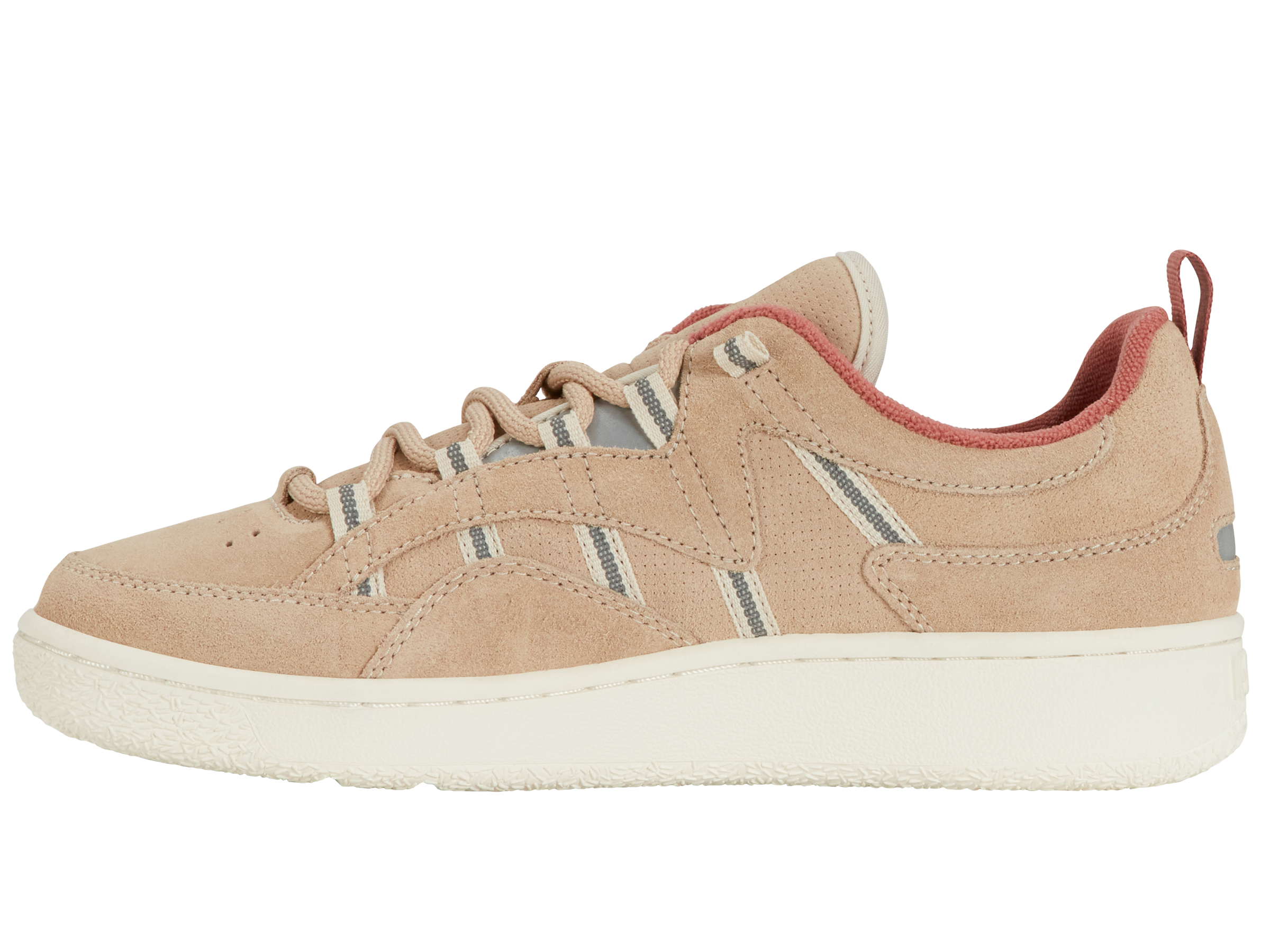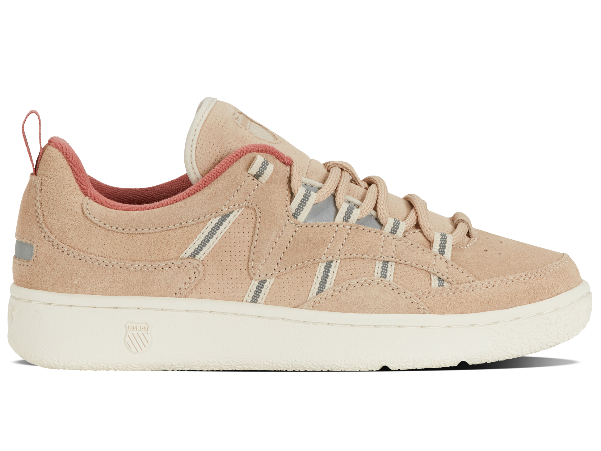 The Slamm 99 Sde celebrates authentic tennis heritage by drawing inspiration from our iconic Ascendor performance shoe of the early ‘90s. This modern interpretation features K-Swiss ’ signature 5 stripes with eye catching reflective hits and a clean court outsole. The Slamm 99 Sde thanks to suede upper marries tennis aesthetic with a cool late 90s skate silhouette perfect for casual wear on and off the court