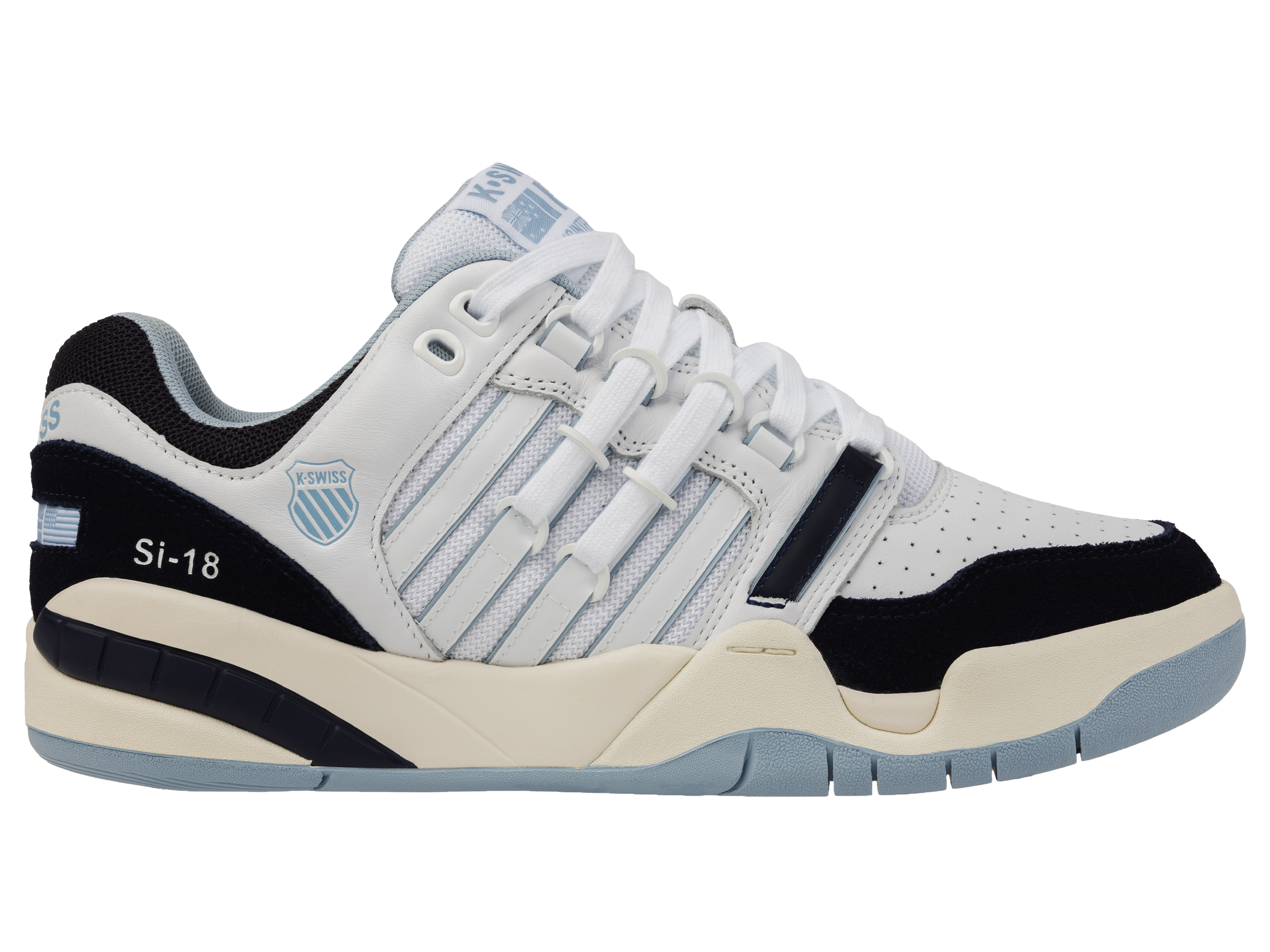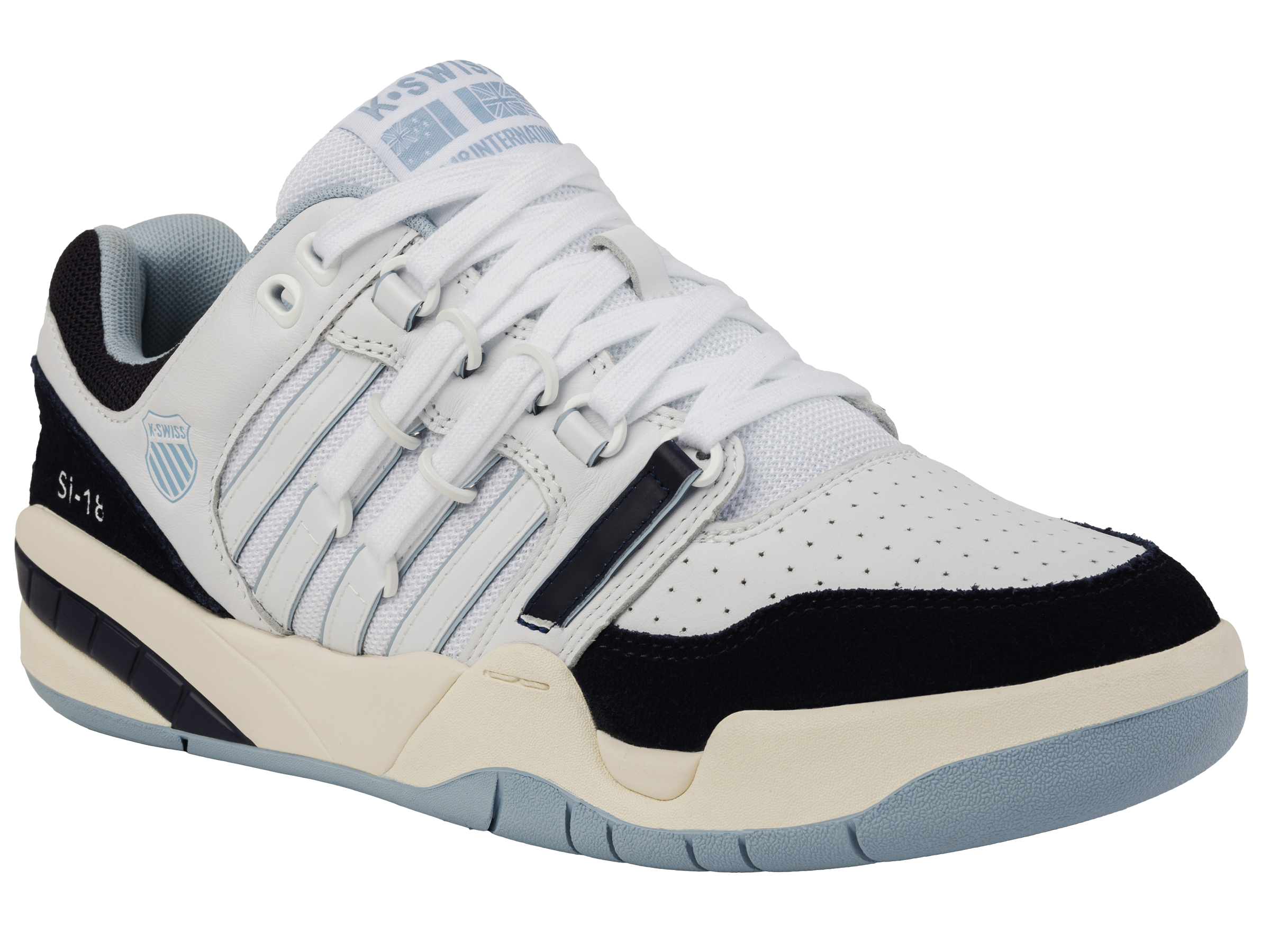 First introduced in 1989, the K-Swiss Si-18 Premier is an iconic representation of K-Swiss’ dedication to honoring athletic heritage. Reengineered for extra comfort, the SI-18 combines a soft and supple leather upper, with a full-length EVA midsole. With its vintage ski boot-inspired D-R Cinch lacing system, the Si-18 International is a timelessly recognizable silhouette.