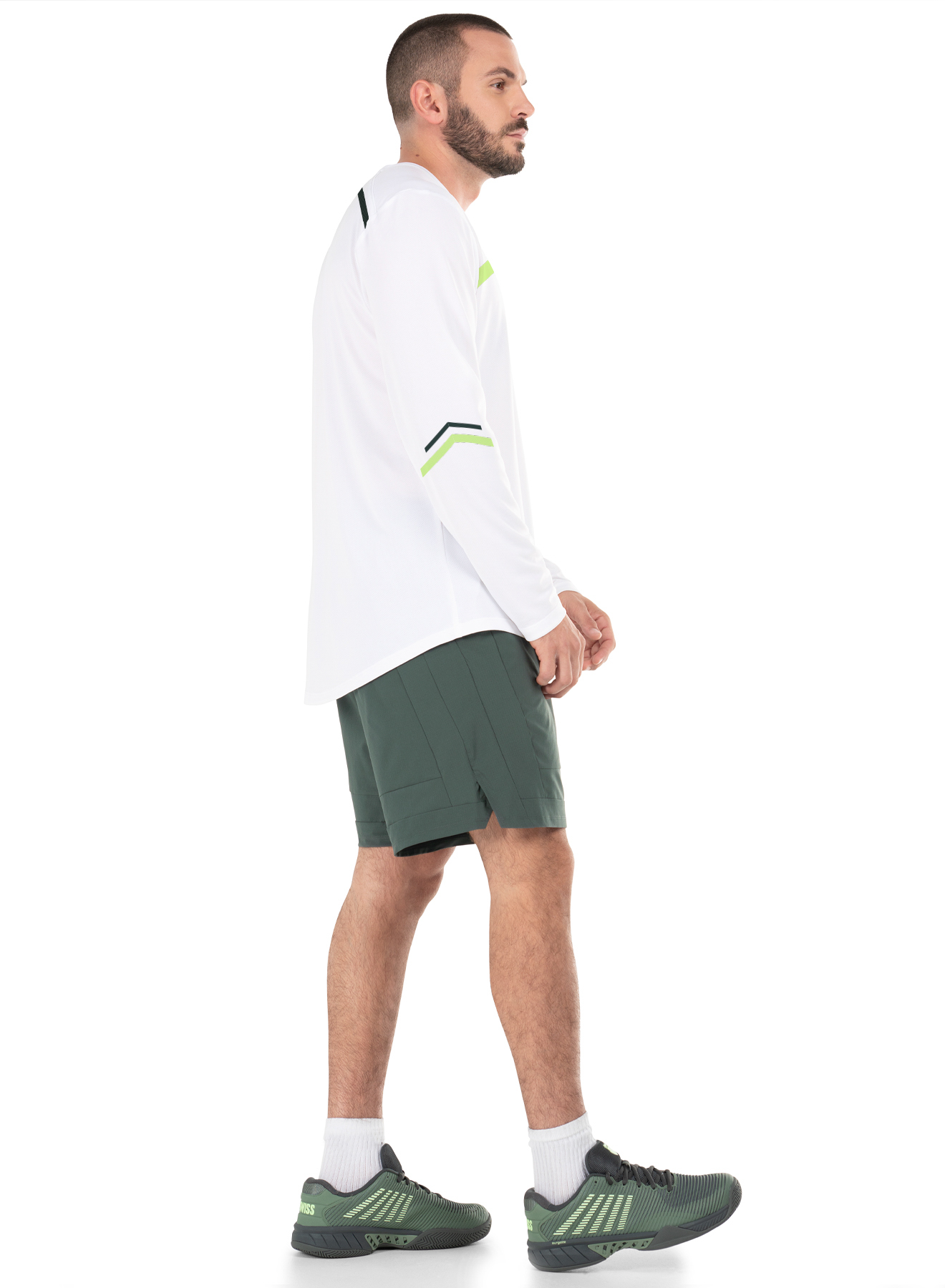 The classic White long sleeve steps into a new era as comfort, performance and style take center court. The high-gauge mesh Jersey fabric with moisture wicking keeps you calm, cool and collecting W ’s while the minimalistic color blocking design and contrast K-Swiss logo bring a modern look to the court.