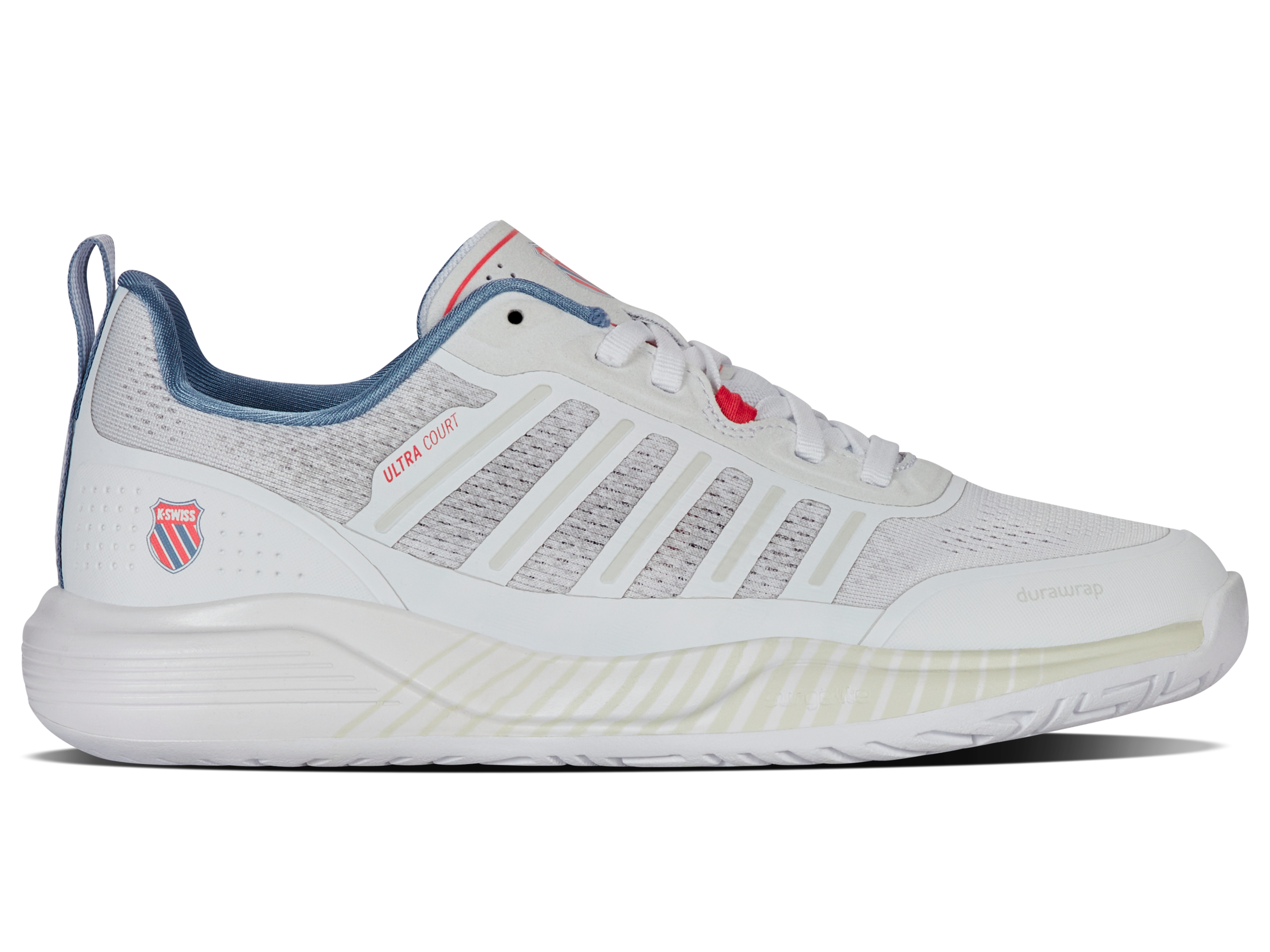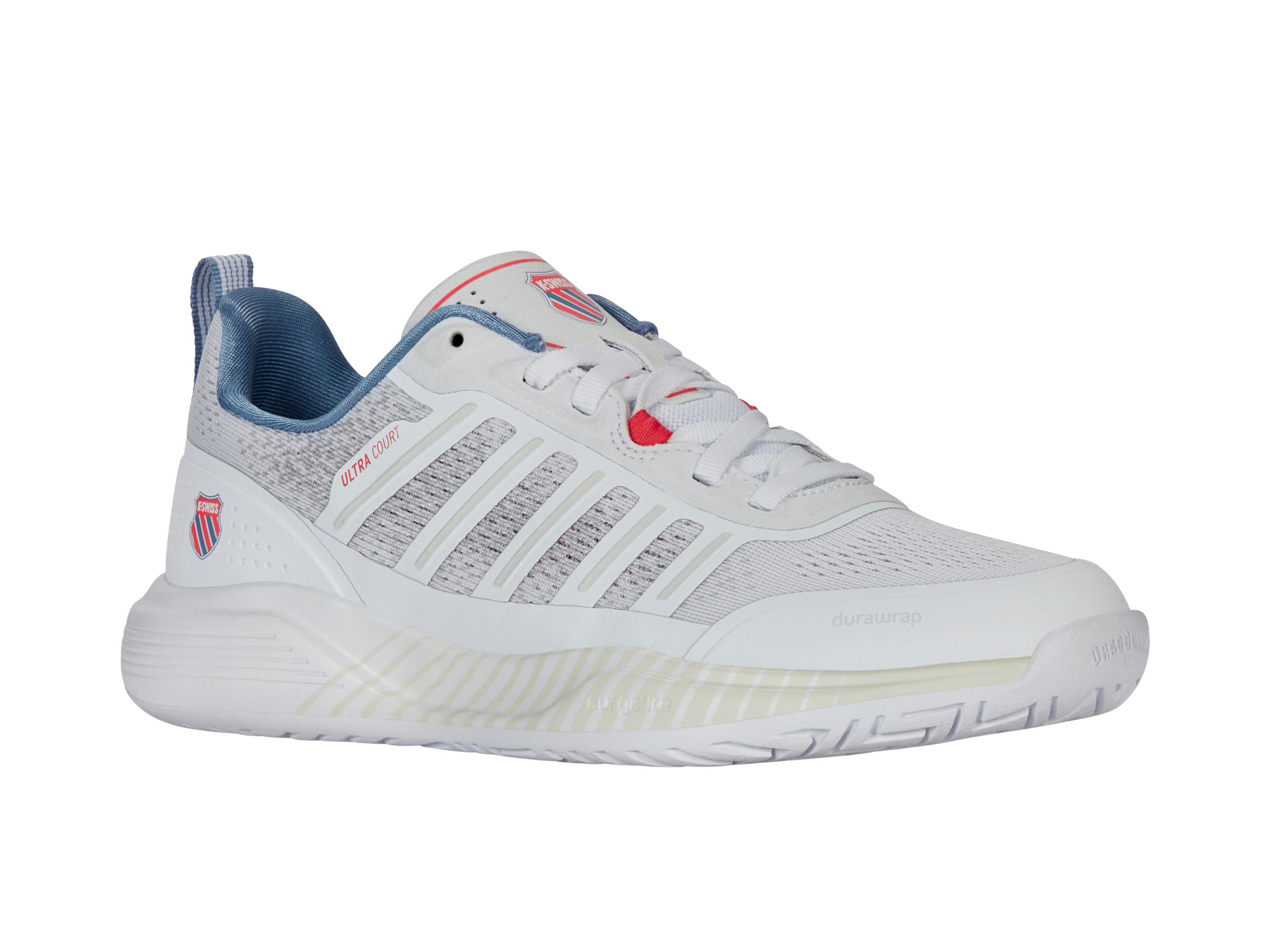 For court performance and running shoe comfort, choose the Ultra Court. Its thick, cushioned midsole offers a responsive ride, while a durable outsole makes it perfect for the court. A breathable upper adds stability for quick lateral moves, and forefoot Durawrap ensures a secure fit with extra drag protection—all without sacrificing comfort or style.